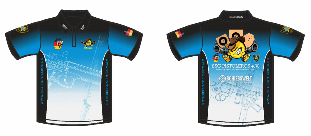 Unser offizielles SSG PISTOLEROS e.V. Vereinsshirt für alle Mitglieder der SSG PISTOLEROS e.V.. Das Shirt ist ein hochwertiges Dry-Fit Shirt der Firma ESA EMPIRE mit unserem individuellen Design und personalisiertem Namensaufdruck.